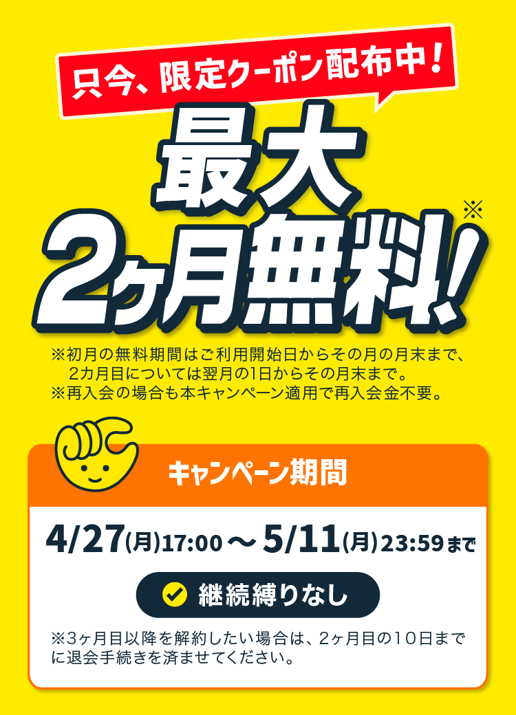 ※ご入会月の退会手続きの締日は毎月10日、翌月までのご利用となり日割りの返金はできません